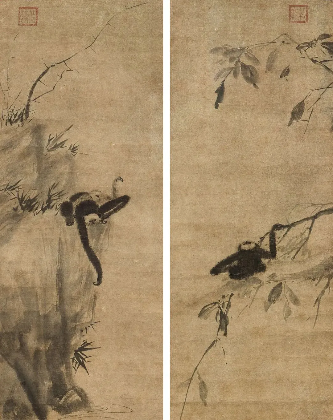 牧溪 猿图对轴