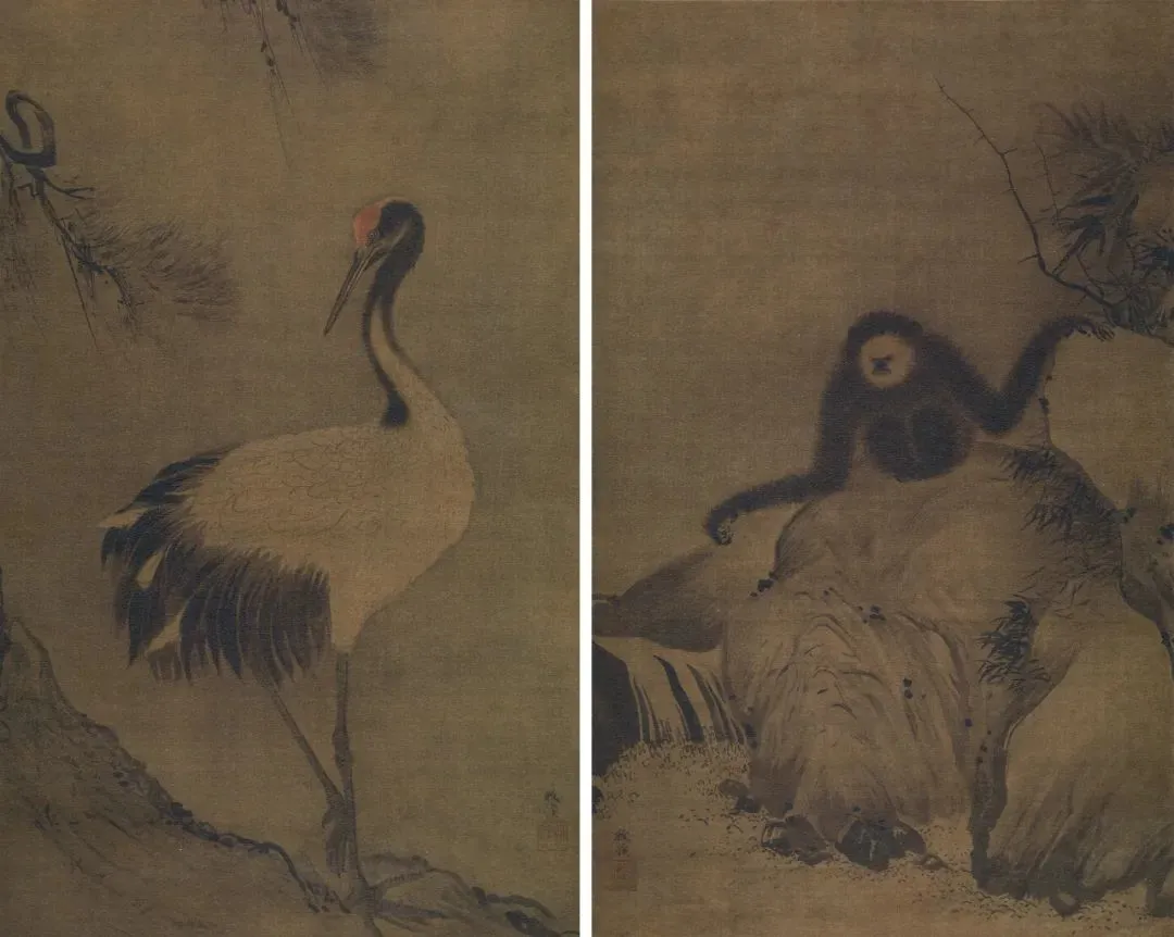 牧溪 猿鹤图对幅